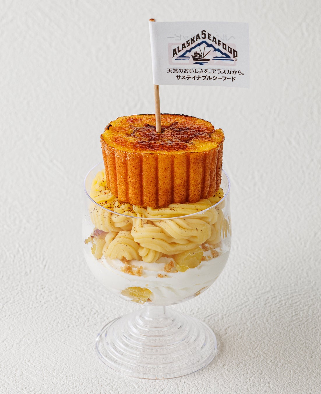 新感覚のシーフードスイーツ!100%天然のアラスカ産スケソウダラを原料に使用したスギヨの“伊達巻”が主役「ふんわり伊達巻ブリュレとおいものモンブラン」