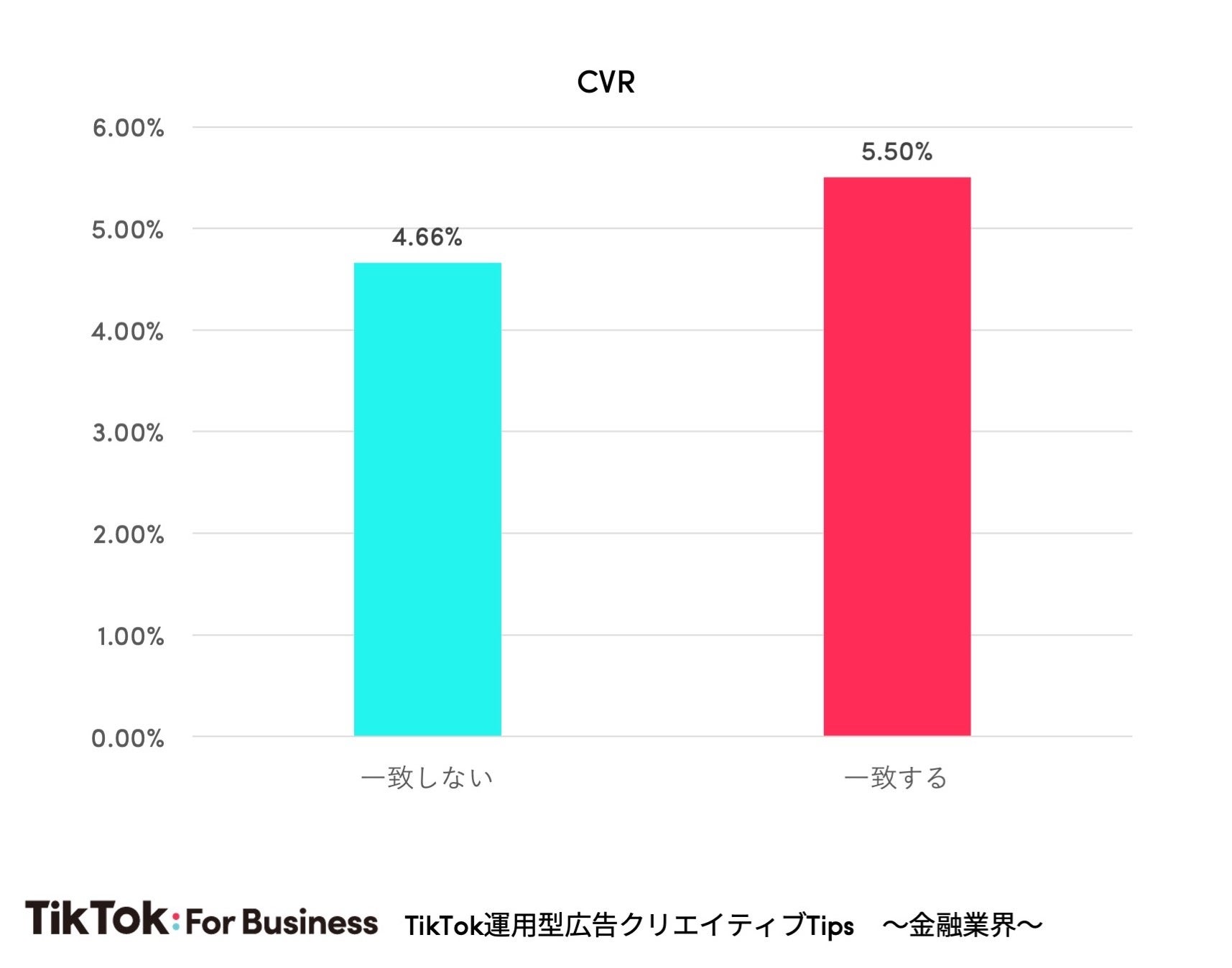 ファーストビューと動画の共感表現は一致している素材は、一致していない素材に比べてCVRにおいて約118%高くなっています。