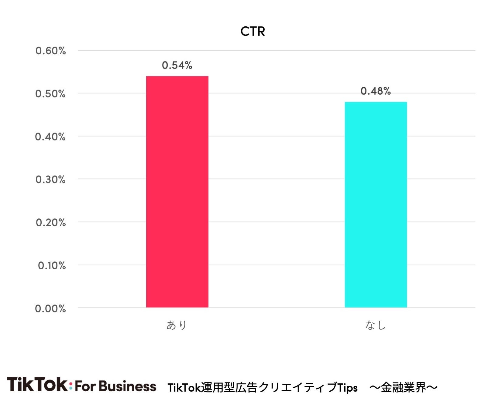 TikTokオーガニック感があるクリエイティブは、オーガニック感がないクリエイティブに比べて、CTRが約113%高くなっています。