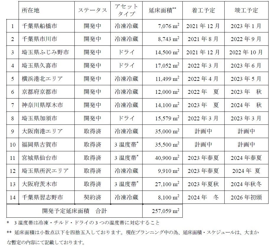 ■物流施設開発予定物件一覧