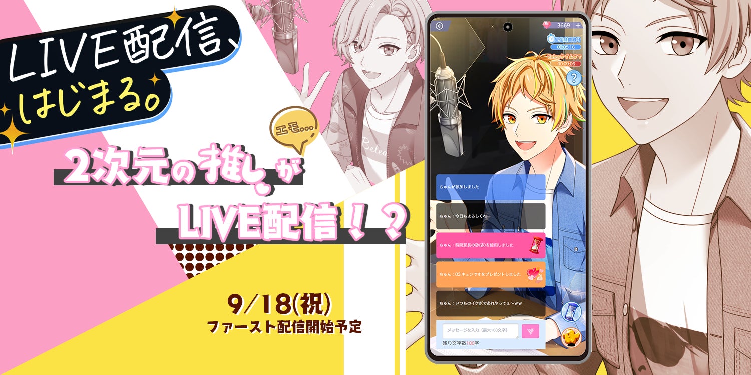 チャット型恋愛シミュレーションゲーム業界では初となる、LIVE配信機能を実装!