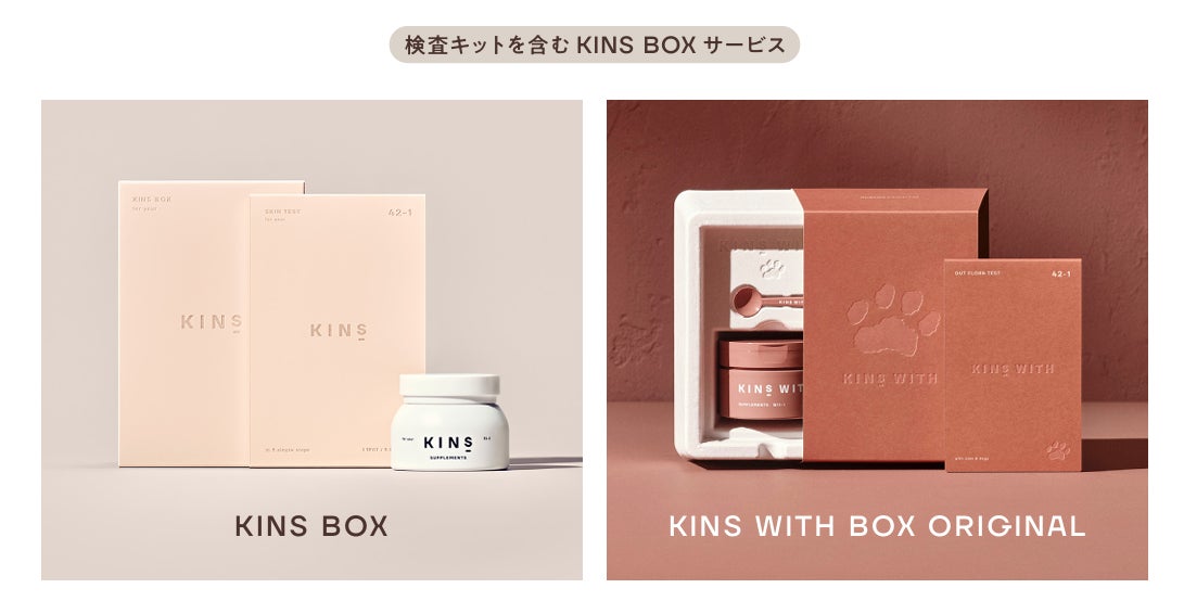 KINSは、コンシューマーヘルスケア事業およびクリニック事業で早期に売上を獲得しながら、マイクロバイオームに関するシーズを探索する独自のビジネスモデルを有するヘルスケアスタートアップです。コンシューマーヘルスケア事業では検査キットと複数タイプのサプリメントを組み合わせたサービスである「KINS BOX」「KINS WITH BOX ORIGINAL」を提供しております。