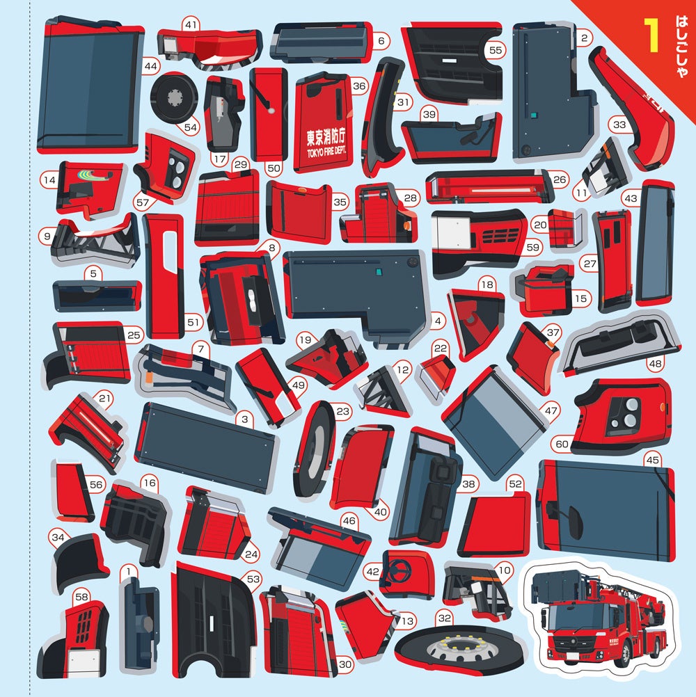 【のりものパズル】はしご車/スーパーアンビュランス/警らパトロールカー/路線バス/ブルドーザー/コンクリートミキサー車/清掃車/熱気球/特急列車/コンテナ船