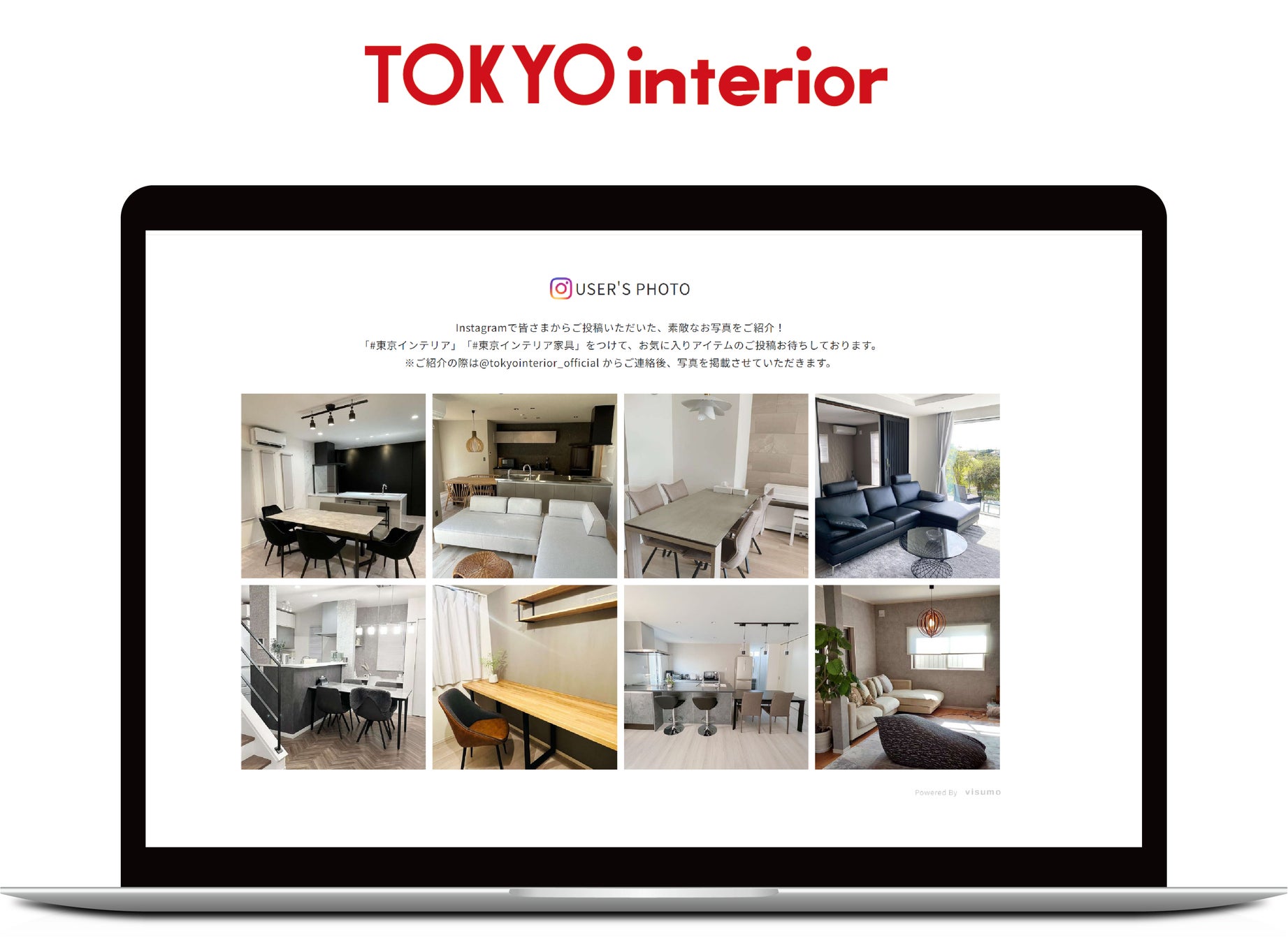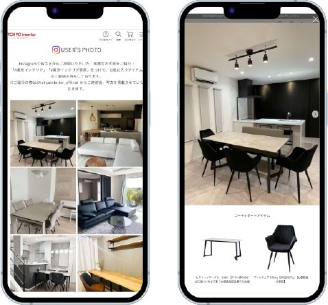 今回、東京インテリア家具のオフィシャルショップでは、Instagram上に投稿されたUGC(※)の活用を開始しました。visumoを通じて、#東京インテリア#東京インテリア家具のハッシュタグ付けたユーザー投稿を収集し、展開しています。