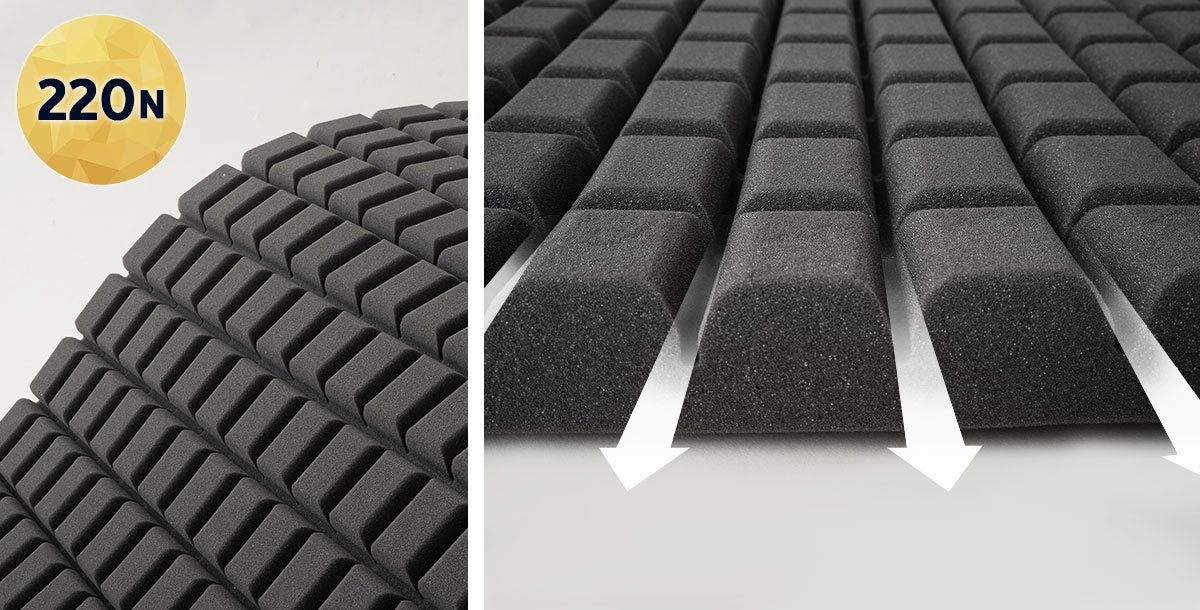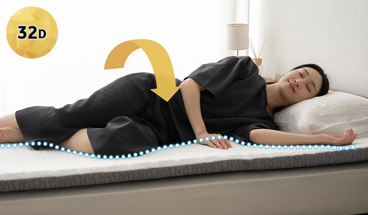 高密度なウレタンが過度な沈み込みを防ぎ、理想的な寝姿勢を保ちます。また、衝撃吸収力に長けているため、寝返りもスムーズにサポートします。