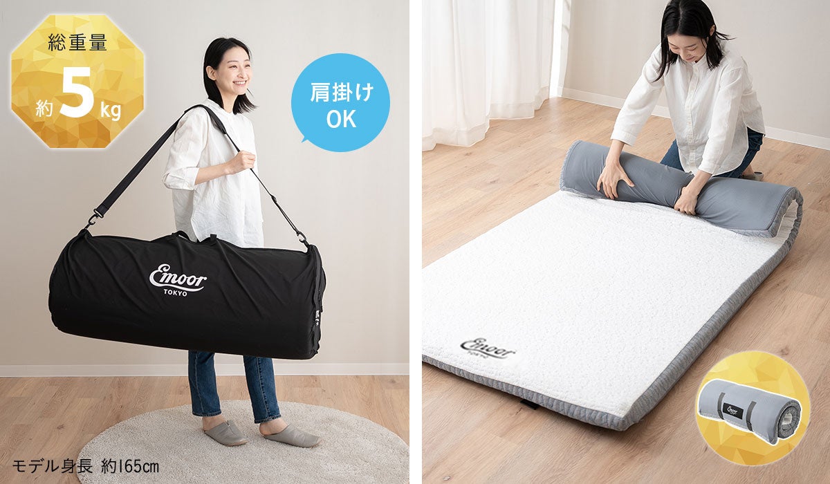 アスリートの声から生まれた「持ち運べる寝心地」人気のエムールプレミアムマットレスから、待望の『ポータブルマットレス』が登場!