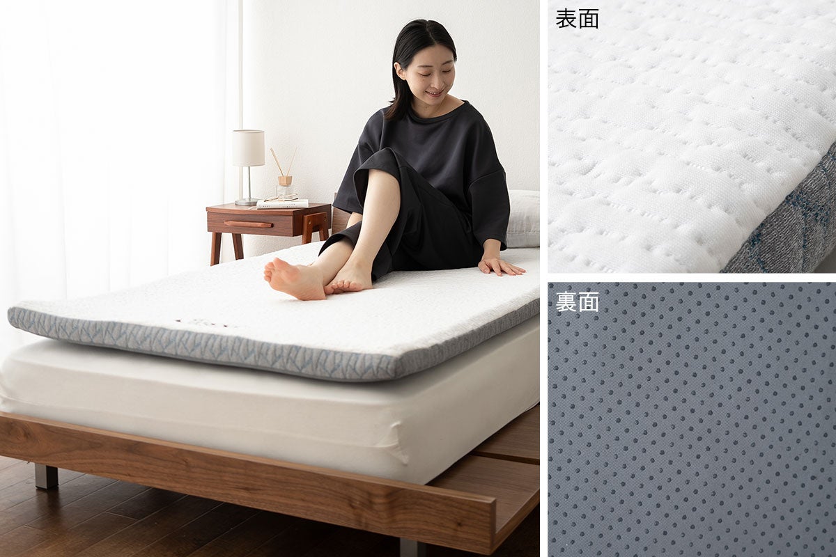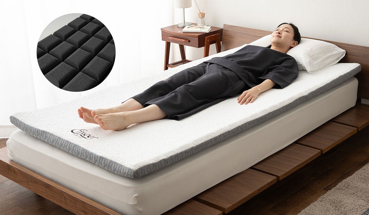 身体の凹凸と重さに合わせて『セル』が柔軟に変形。体圧分散性が非常に高く、どんな寝相でもフィットします。また、縦横にクロスするスリットが通気路として、睡眠中の湿気や汗の拡散を促し、温湿度を調整。朝まで快適な寝心地をキープします。