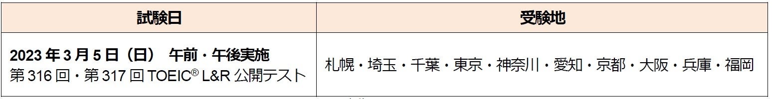 TOEIC® Listening & Reading公開テスト~2023年3月5日の試験日を追加~