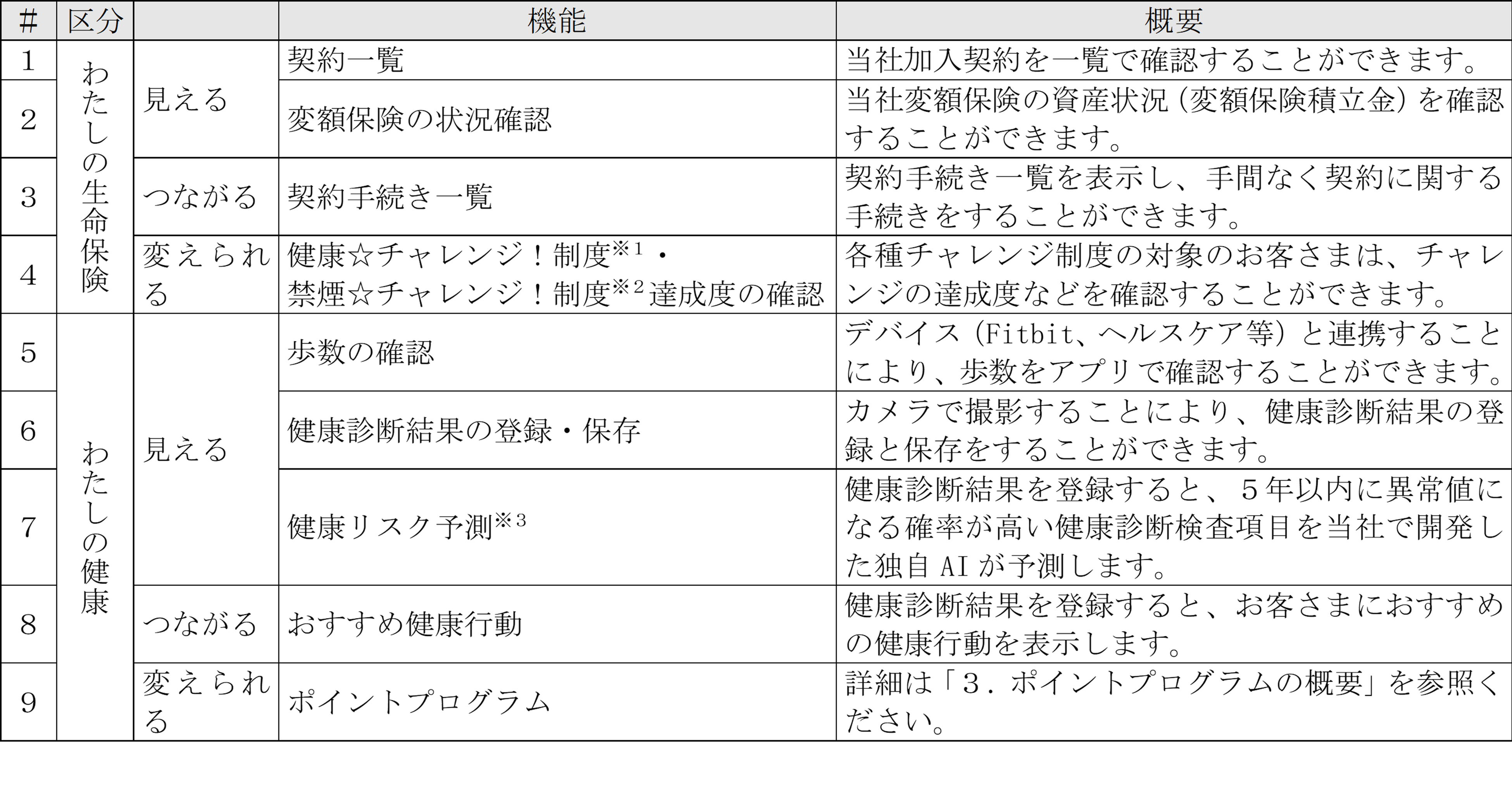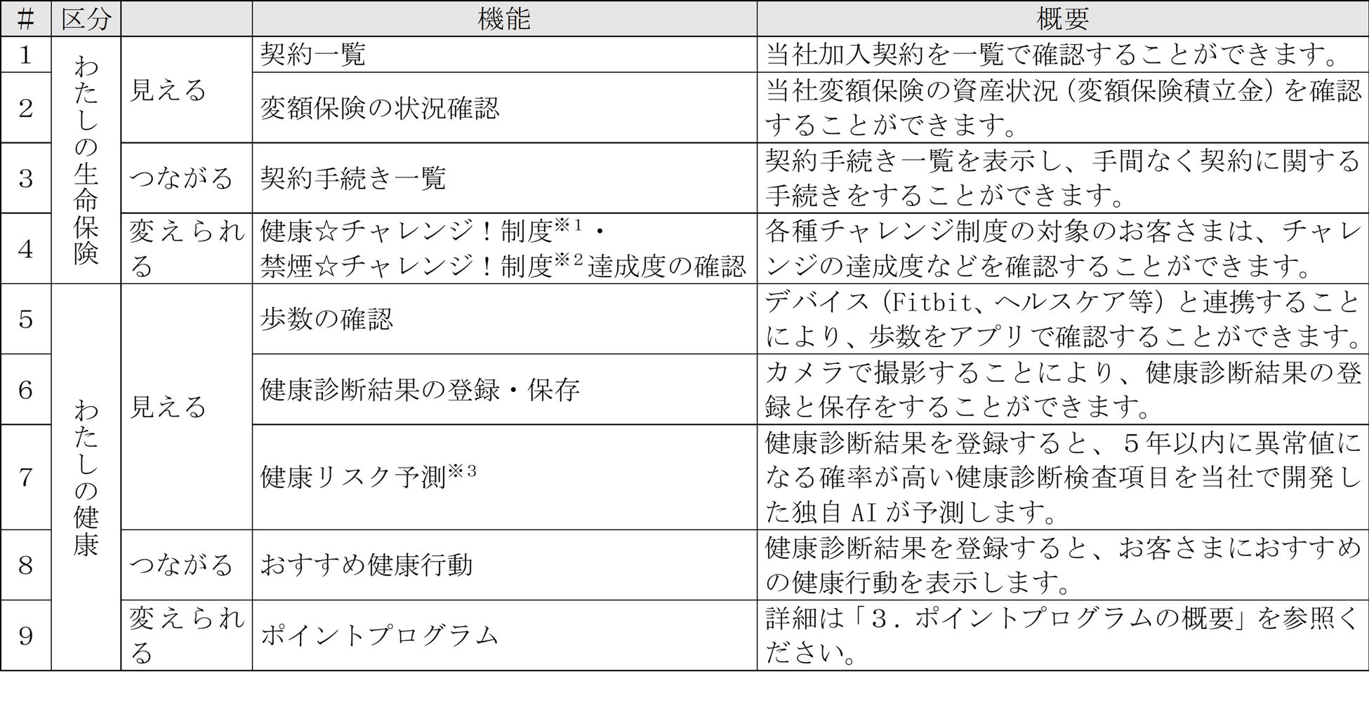 「見える、つながる、変えられる」を実現するMYひまわりアプリの主な機能は下表の通りです。