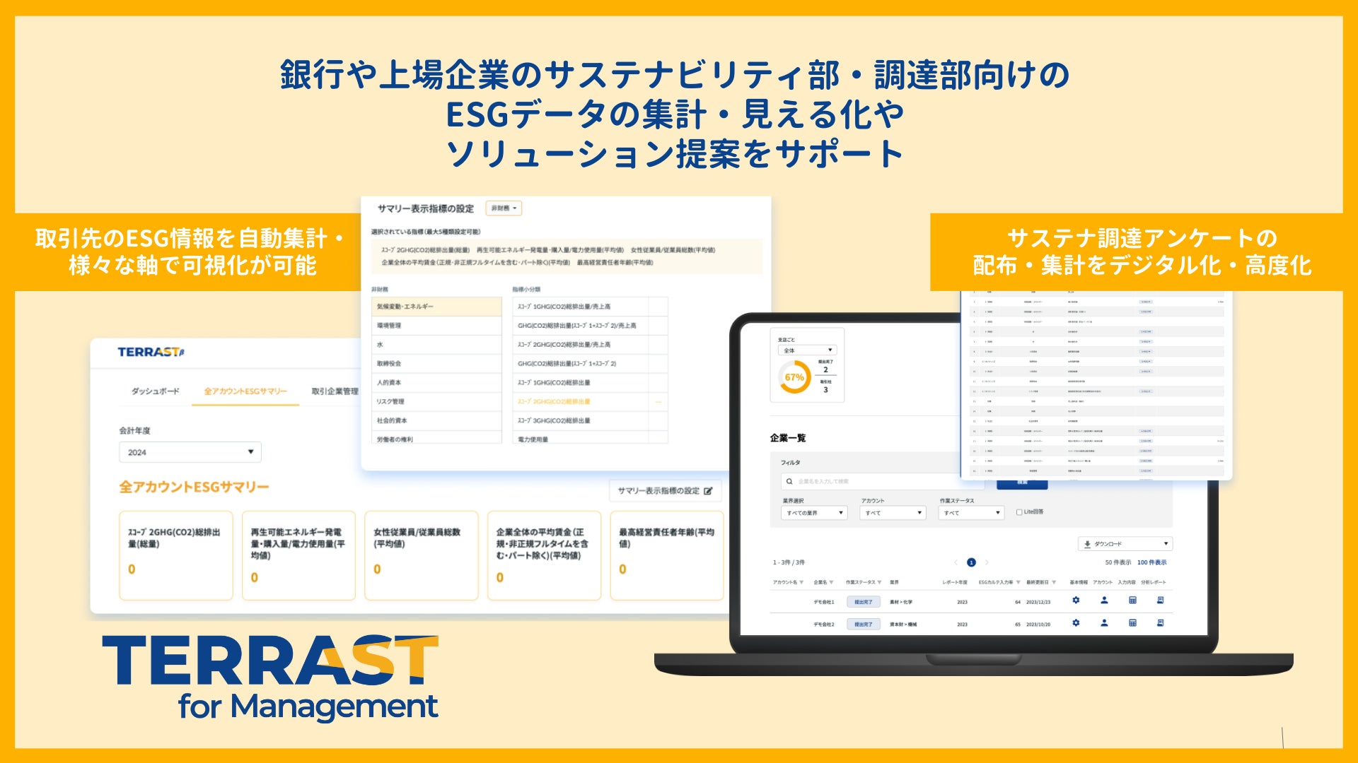 バイヤー向け、ESG情報の連結開示のためのデータ集計・可視化・モニタリングツール「TERRAST for Management」