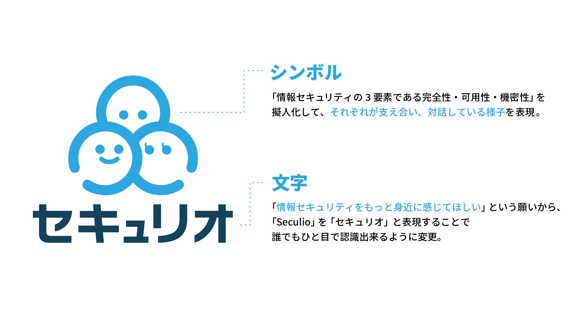 ロゴの⽂字は、従来のSeculioから「セキュリオ」と表現することで、誰でもひと⽬で認識してもらえるように変更しました。また、サービスとしての信頼性・セキュリティらしさを表現するためにフォントは丸めず⾓張らせました。