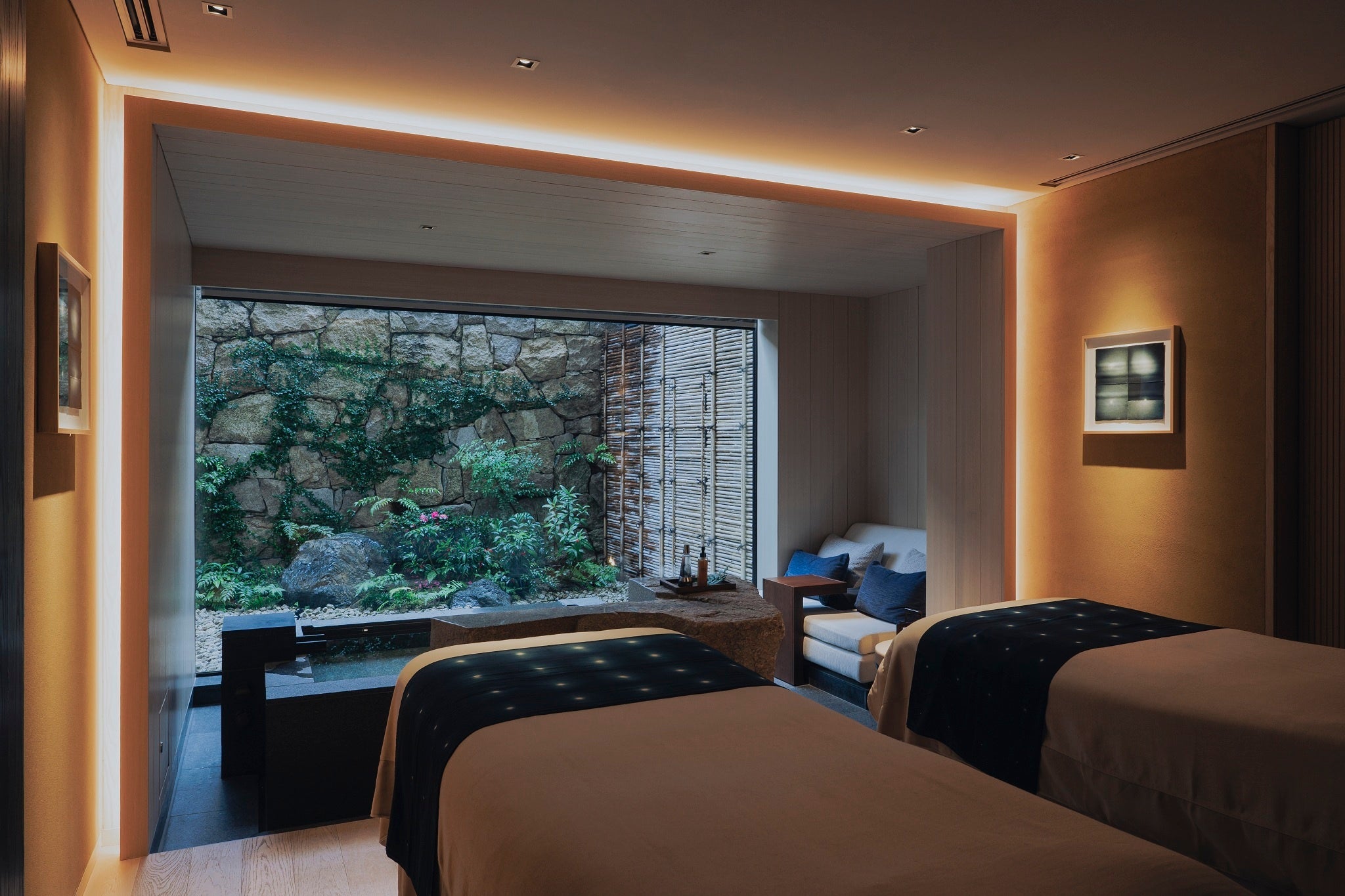「静謐を湛える」のコンセプトのもと、ホテルの敷地の地下1000mに湧く天然温泉「サーマルスプリング」のほか「 SPA トリートメント」、「プライベート温泉」を有する SPA エリア。上質な静けさと水に包まれた空間が日常を離れたひとときへと誘い、最上の癒し とくつろぎをご堪能いただけます。「時」「音」「光」「香」「水」、 5 つのテーマが織りなす空間が五感を心地よく潤し、新たな自分と出会う旅をよりいっそう豊かに彩ります。2026年2月「フォーブス・トラベルガイド2026」のスパ部門において最高評価の5つ星を獲得。