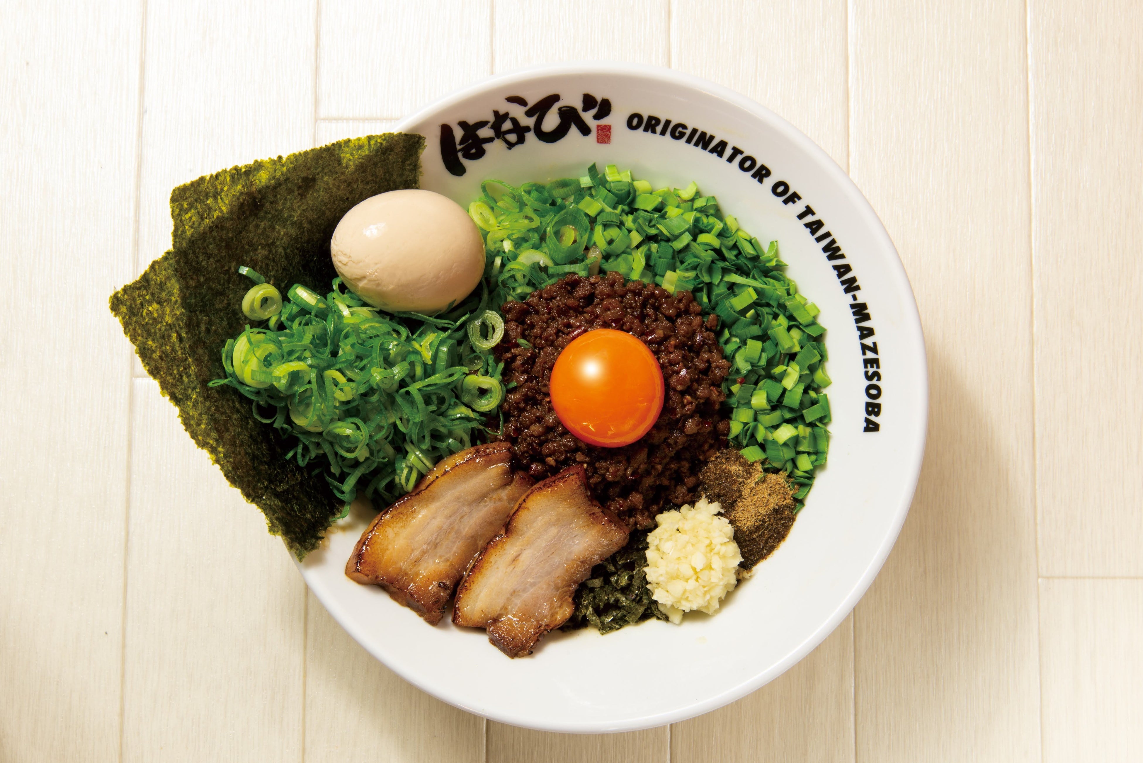 台湾まぜそばは、台湾ミンチ(唐⾟⼦とニンニクを効かせた醤油味のピリ⾟ミンチ)を極太の麺に乗せた、汁無し麺の⼀種です。代表的な具は台湾ミンチ、⽣の刻んだニラ・ネギ、⿂粉、卵⻩。好みでおろしニンニクを⼊れ、よくかき混ぜてお召し上がりください。スープがない台湾まぜそばには通常の麺を使⽤すると具が絡まりにくい為、湯切りをせずに麺棒でかきまぜ麺に傷をつけて粘りを出しています。粘りが出ると同時に⽢みも増して台湾ミンチと相性バッチリの麺に仕上がります。また、台湾まぜそばを⾷べる際にオススメしたいのが【にんにく】。⼤量のにんにくは躊躇する気持ちもありますが・・・思い切ってトッピングすればやみつき間違いなしです。