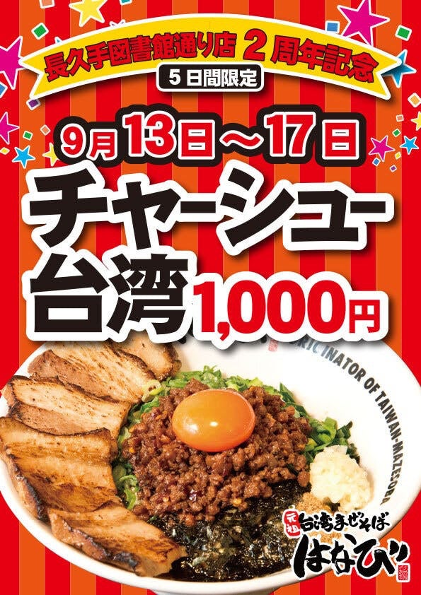 【麵屋はなび】長久手図書館通り店が2周年記念!