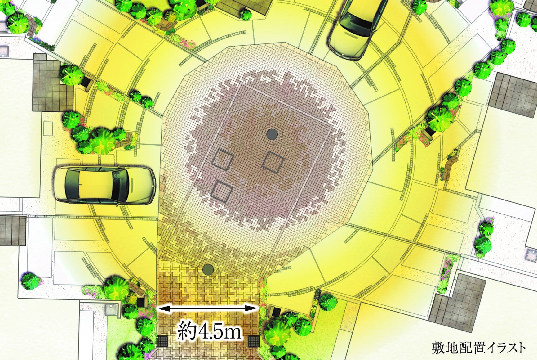 子どもたちとその家族を地域で見守り合う“ゆるやかな繋がり”を自然に発生させるため、建物周囲の一部空間と街区内道路を住民同士の交流の場〈プラザ/PLAZA〉(クルドサック)として位置づけ、宅地の一部に地役権を設定。また、プラザ側に建物開口部を設けることで、家族同士でプラザを見守ることが可能となり、防犯面での効果も期待されます。