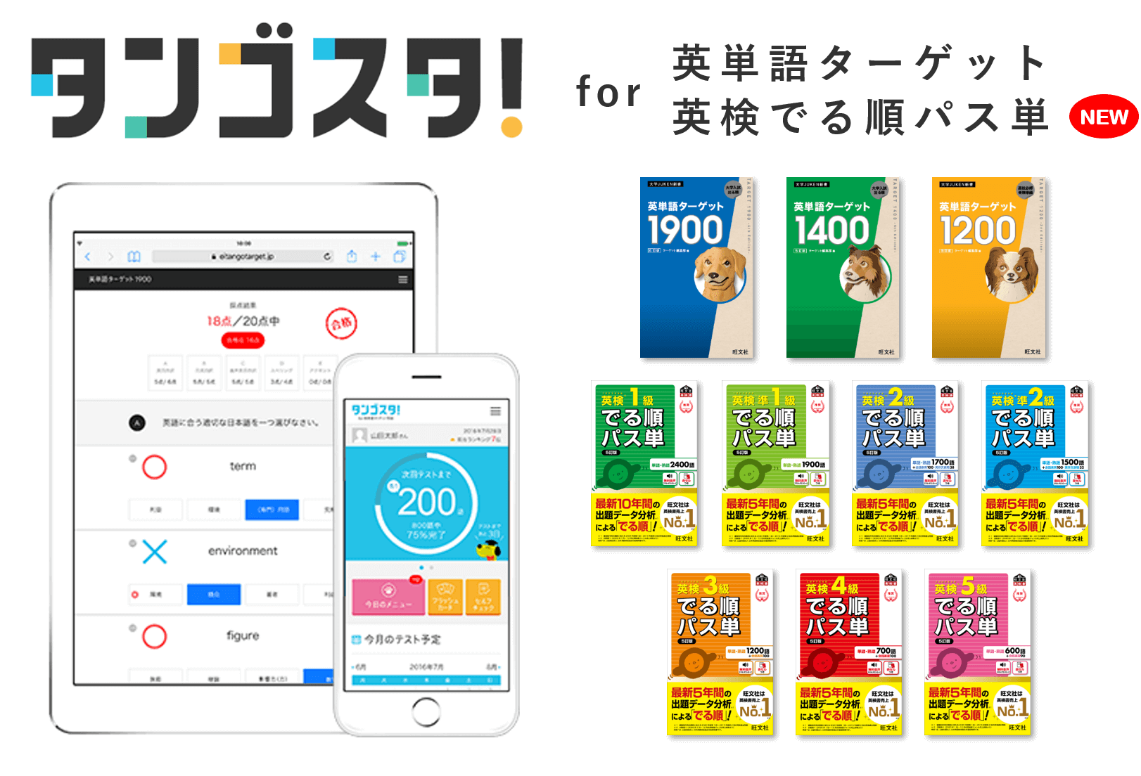 教育出版の株式会社旺文社(本社:東京都新宿区、代表取締役:粂川 秀樹)は、ICT機器を活用して生徒の英単語学習をサポートするWebアプリケーション「タンゴスタ!」に、「英検® でる順パス単」【5訂版】シリーズ(1級~5級)のコンテンツを追加搭載しました。4月28日より、新たに英検®対策にも有効なサービスとしてバージョンアップし、学校および学習塾などの教育事業団体向けに提供を開始します。