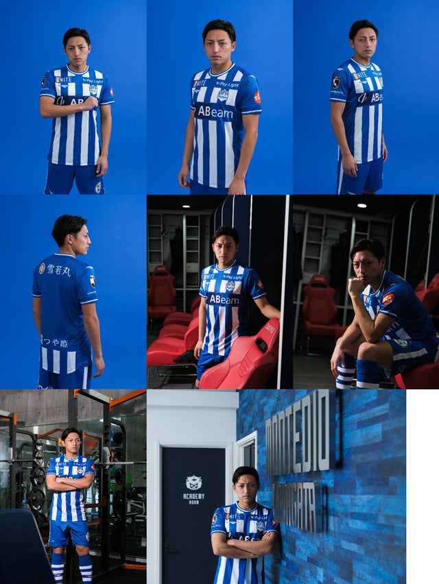 エンブレムを四半世紀ぶりにリニューアルした新生モンテディオ山形ということで、1stユニフォームも原点回帰した青白のストライプにし、過去と未来が融合することで、新たな未来を築くべく進化したデザインとしました。