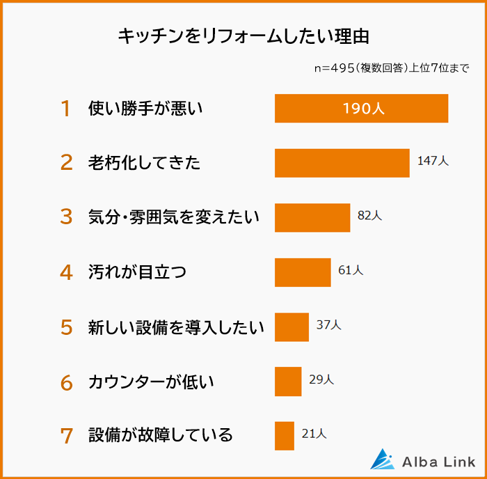 今回、株式会社AlbaLink( https://albalink.co.jp/ )が運営する訳あり物件買取ナビ( https://albalink.co.jp/realestate/ )は、キッチンのリフォームに興味がある495人を対象に「キッチンリフォーム」についてアンケート調査を実施しました。