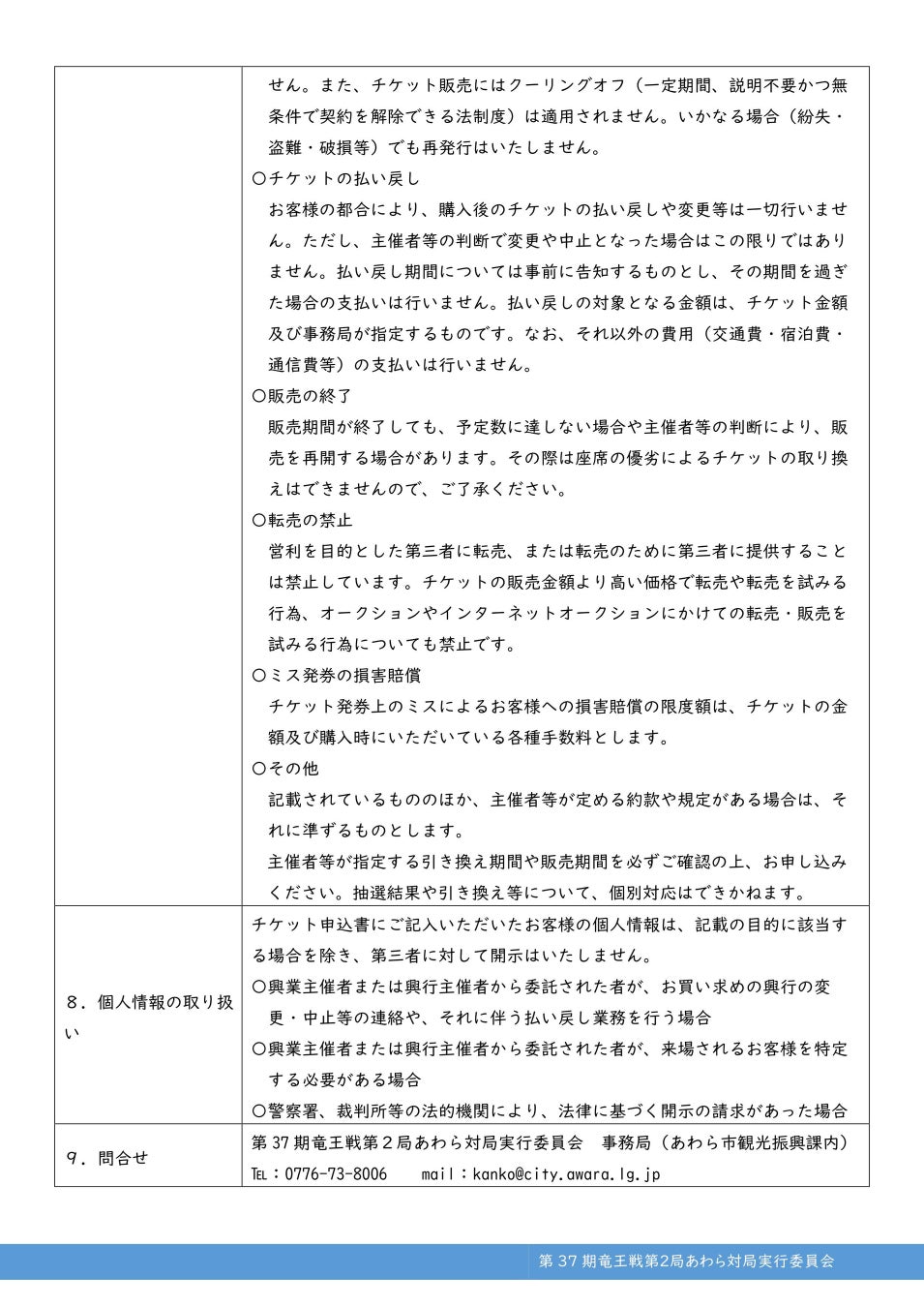 第37期竜王戦第2局あわら対局実行委員会(あわら市観光振興課内) 電話: 0776-73-8006