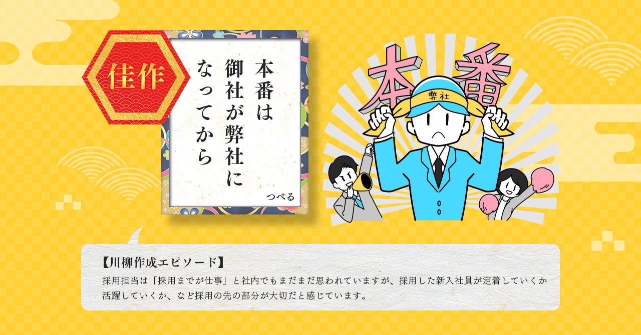 佳作5作品ほか受賞作品も発表。今と未来の採用市場が垣間見える川柳が多数