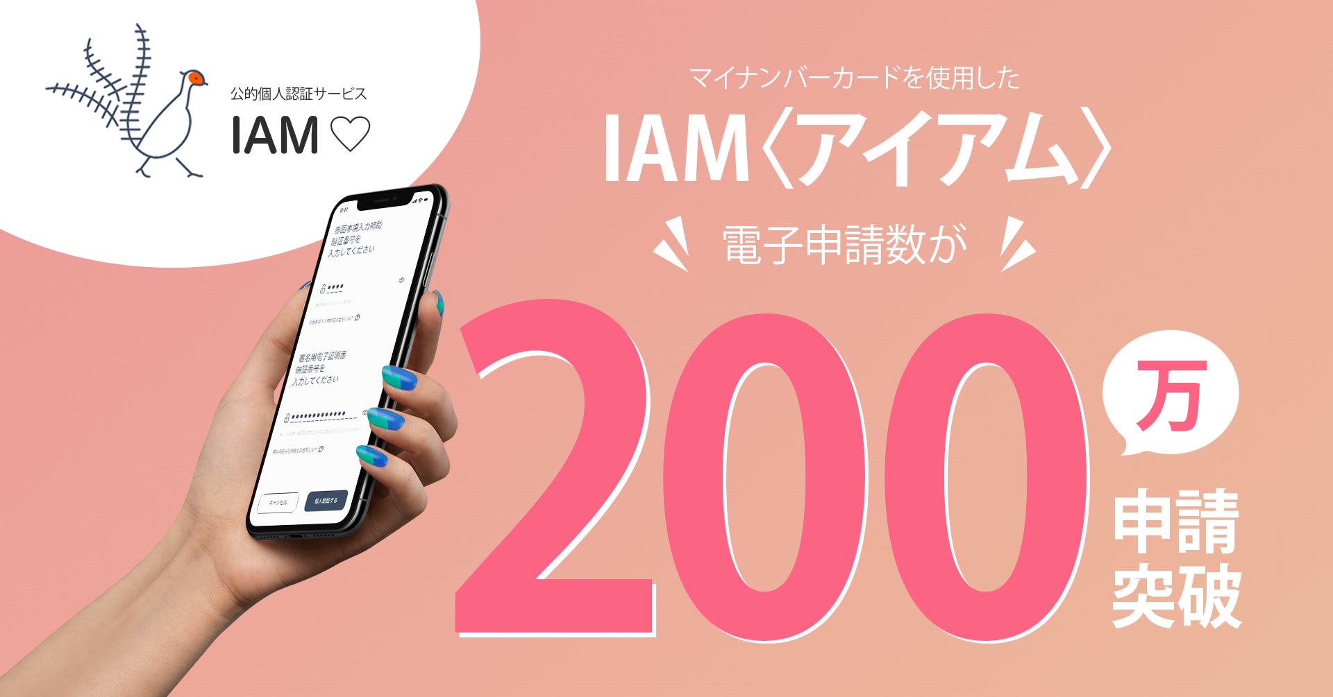 2023年11月23日時点で、公的個人認証アプリ「IAM<アイアム>」の2023年寄附分の累計申請数(利用数)が200万を突破しました。