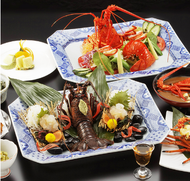 ※写真の伊勢海老の活造り、伊勢海老のサラダは2名様盛りです。
