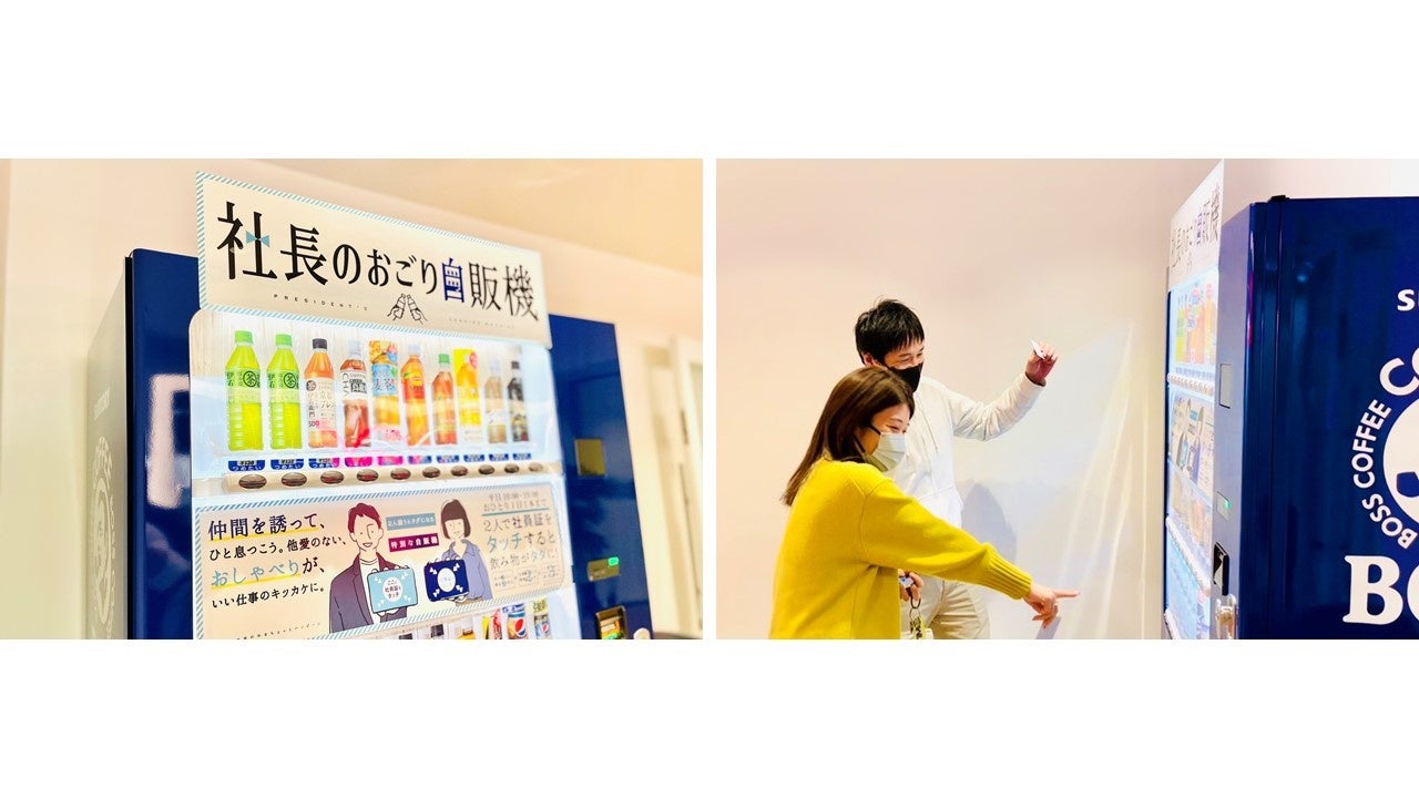 2人揃えば飲料代が社長負担に! 「社長のおごり自販機」を設置 「自販機アンバサダー制度」を活用し、社内コミュニケーション活性化