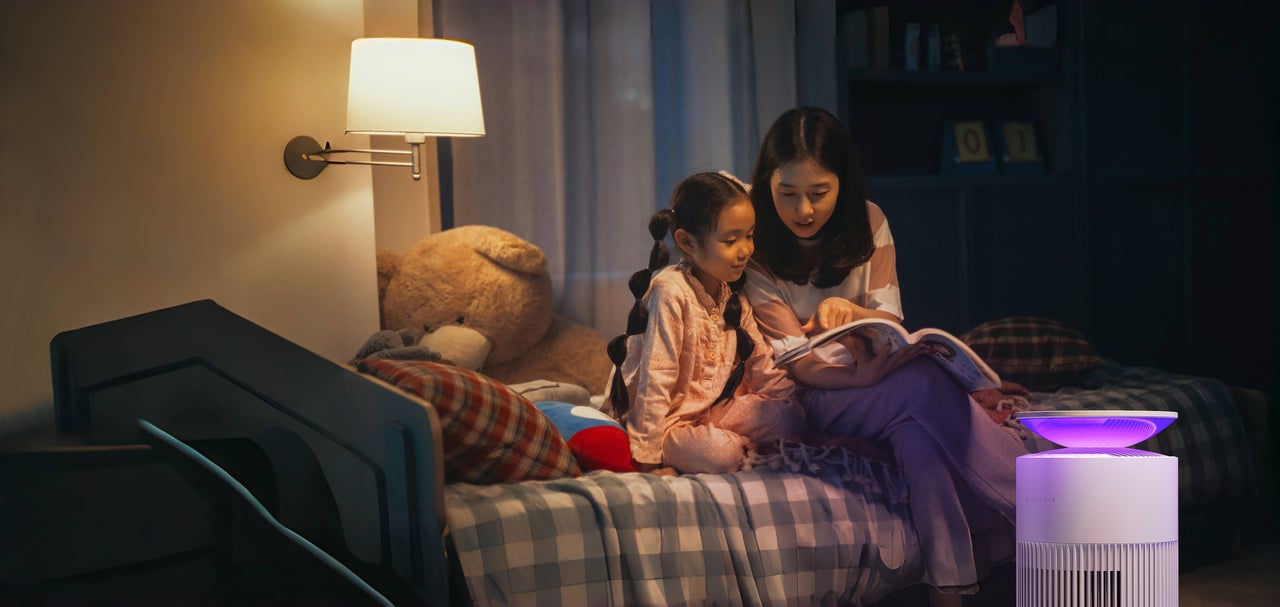 空気質の指標として役立つ4色の表示ライトを含め、紫やグレーなど計10色のカラーライトは間接照明としても◎。