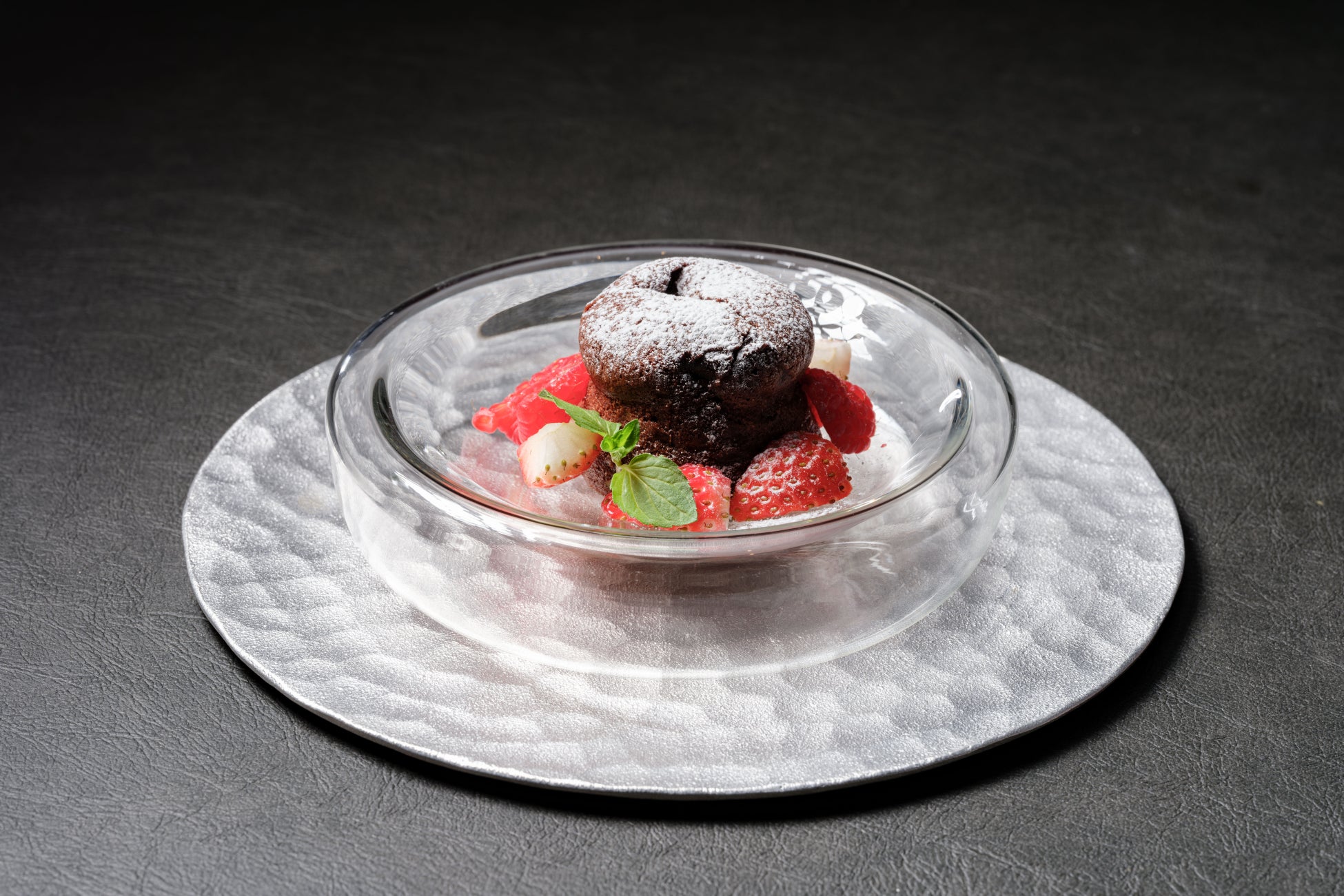 焼き立てのガトーショコラからとろけ出す濃厚なチョコレートガナッシュ。カットする瞬間のわくわく感と、フレッシュベリーとのマリアージュを楽しめる一皿です。