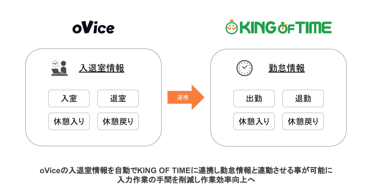 バーチャルオフィスの入室情報と勤怠情報を自動API連携する「oVice to KING OF TIME」リリースのお知らせ