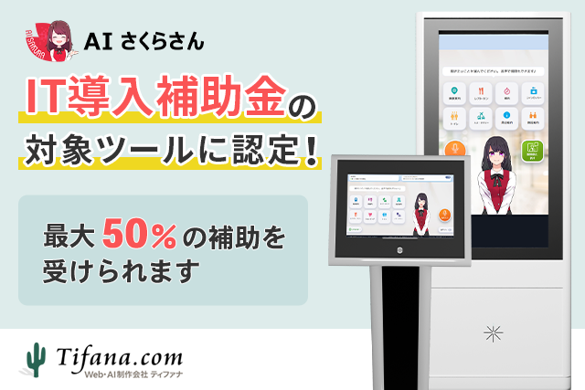 株式会社ティファナ・ドットコムが提供しているAIチャットボット・アバター接客「AIさくらさん」が、「IT導入補助金2022」の対象ITツールに採択されました。