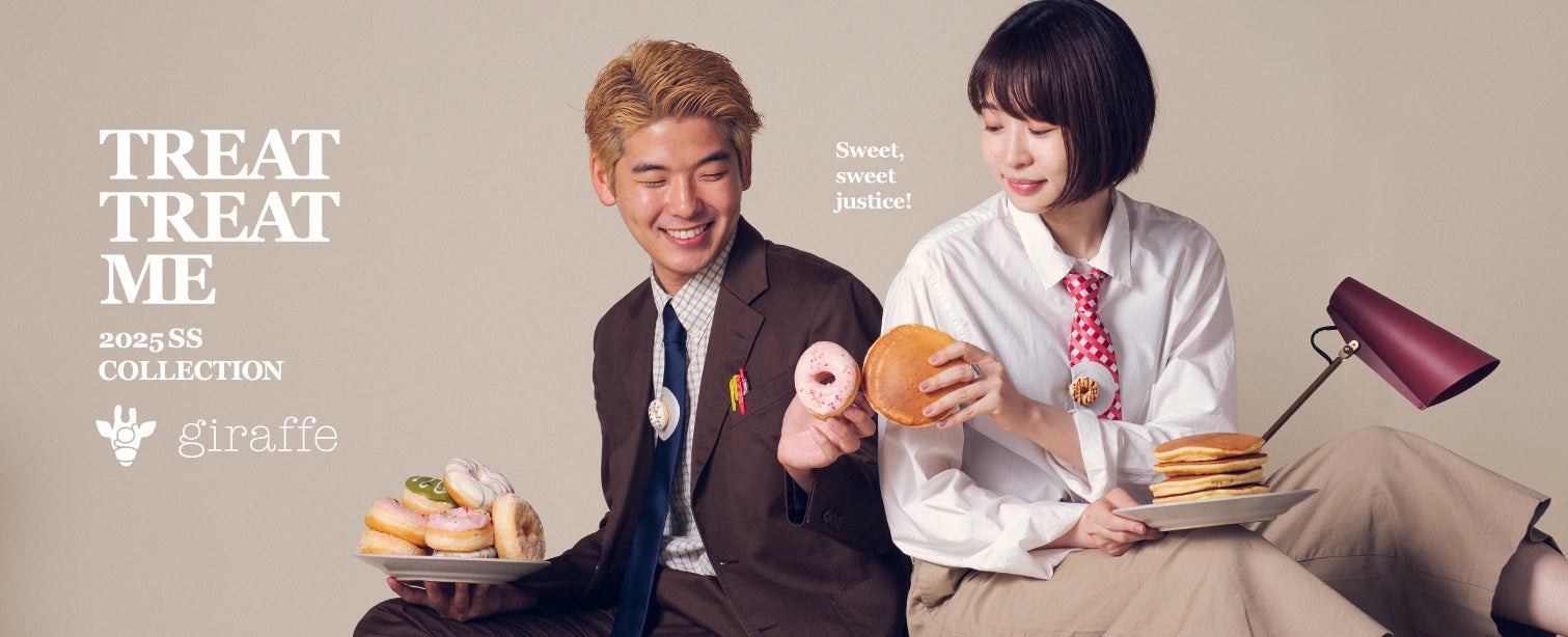 株式会社スマイルズが運営するネクタイブランド「giraffe」は、2025 年1月31日(金)11:00~、2025SS TIE COLLECTIONをgiraffe直営店、オンラインショップ、他取り扱い店にて販売開始します。今シーズンのコレクションのテーマは「TREAT TREAT ME」。「がんばる自分自身を、時には思いっきり甘やかしてもいい!」。そんなメッセージを込めて、とびきり甘くキュートなスイーツたちをモチーフにデザインしたラインナップです。