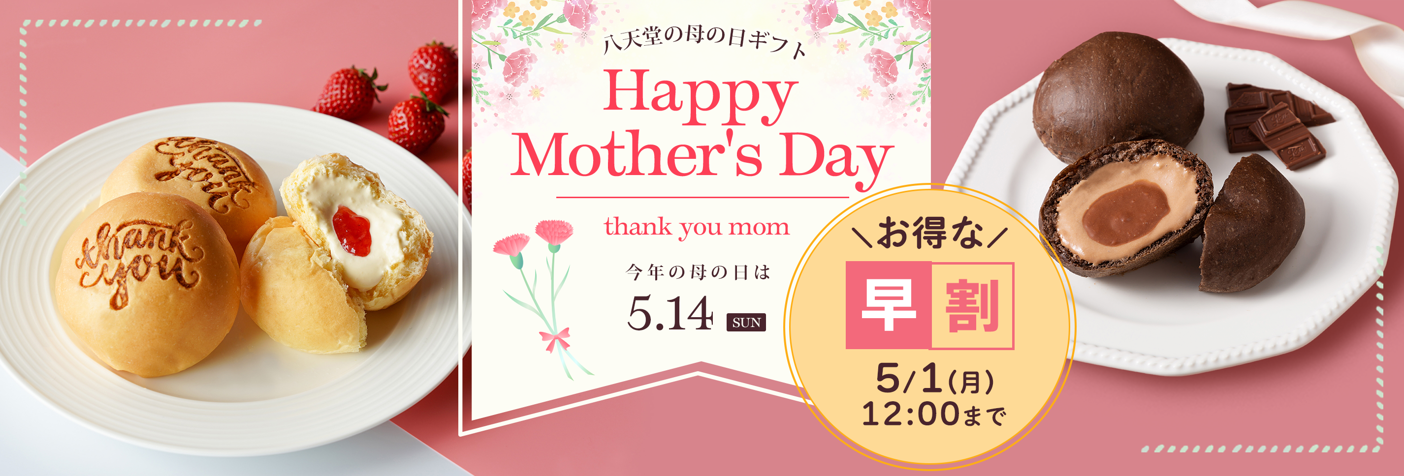甘いスイーツパンと、華やかなギフトでありがとうの気持ちを伝える限定の特別セットです。