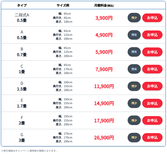 荷物以上に大きな部屋を借りてしまうことや、狭すぎて荷物が入らなかったなんていうトラブルを回避できます。