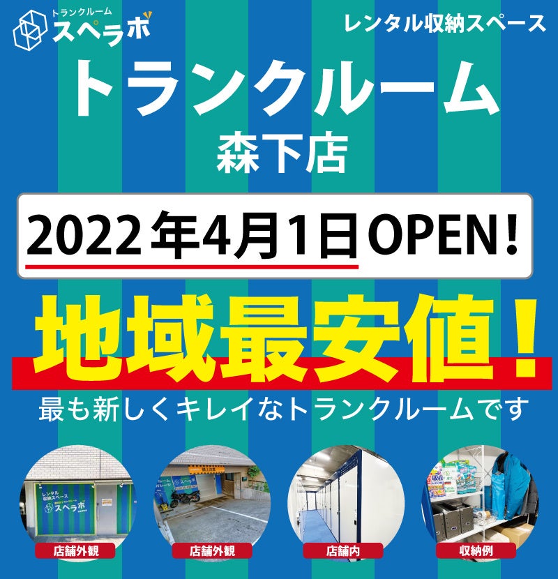 【4月1日(金)オープン】見学から契約、解約まで完全非接触・非対面、お申し込みからご利用まで最短1時間程度!都内にて絶賛運営中のトランクルーム【スペラボ】が墨田区森下駅近くに出店!!