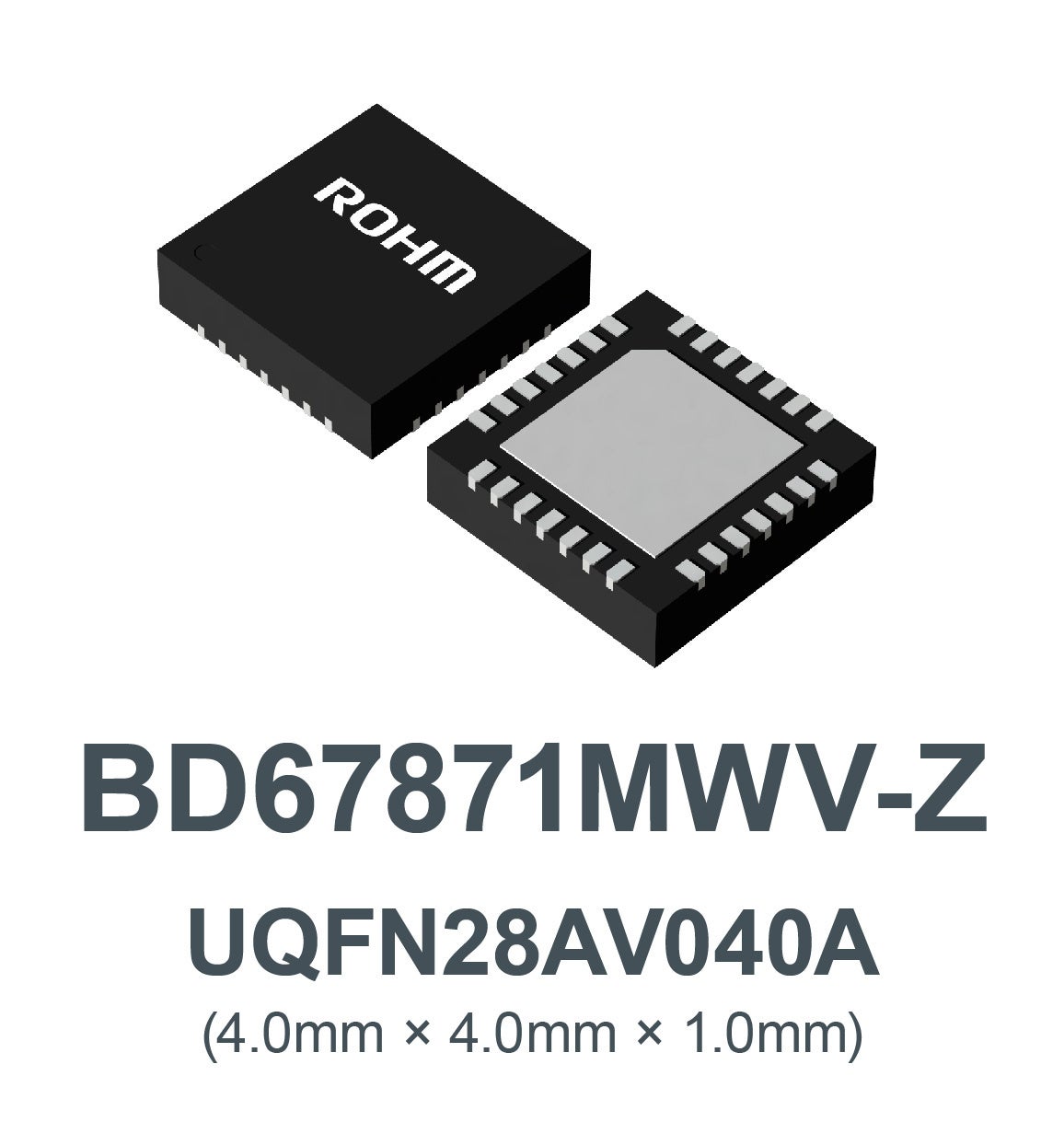 ローム株式会社(本社:京都市)は、中耐圧(12〜48Vシステム)向けの三相ブラシレスDCモータドライバIC「BD67871MWV-Z」を開発しました。独自の駆動ロジックを搭載することで、モータドライバICではトレードオフの関係にあるFETの発熱低減と低EMI(*1)を両立しました。