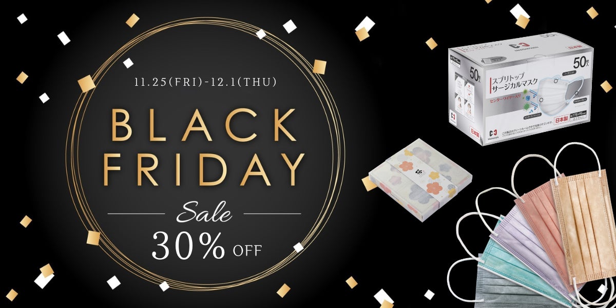 この度、Amazonにて開催される年に一度のビッグセール『Amazonブラックフライデー』に参加し、人気の日本製マスクを通常価格から30%オフの特別価格にて販売いたします。