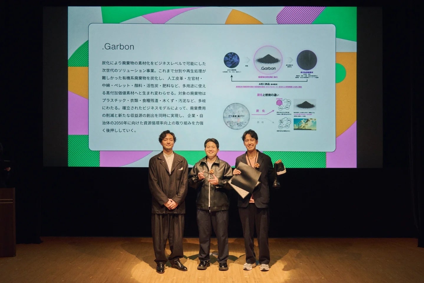 .Garbonは、廃棄物を焼却ではなく炭化し、残った炭を人工皮革や建材、顔料などに配合して高付加価値素材を製造しています。2025年には「DESIGNART TOKYO 2025」のメイン会場内装に採用されるなど、意匠性と環境機能の両立で注目を集めてきましたが、今回の受賞により、技術的な知財価値の高さも改めて証明される形となりました。