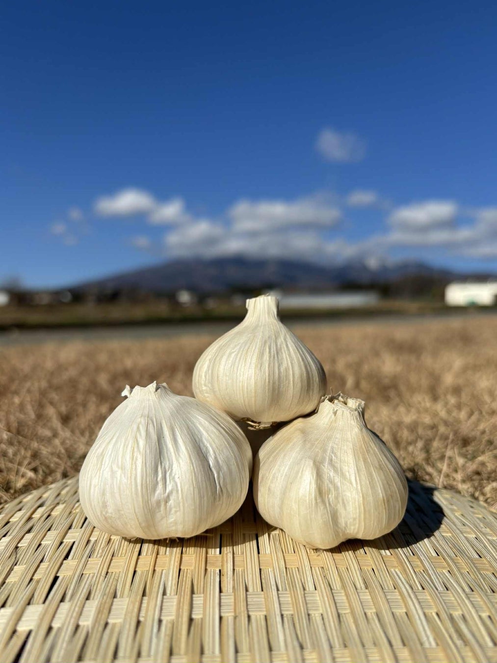 山梨県八ヶ岳地域で有機栽培された有機ニンニクです。 香り・甘み・余韻・食感など立体感のある味わいが特徴です。また、ニンニク特有の匂い残りが少なく後味が穏やかです。 市場流通では見た目やサイズで流通しにくい規格外品でありながら、味や香りに優れているため、スライスやガーリックオイル、ペーストなどさまざまな料理で楽しんでいただけます。