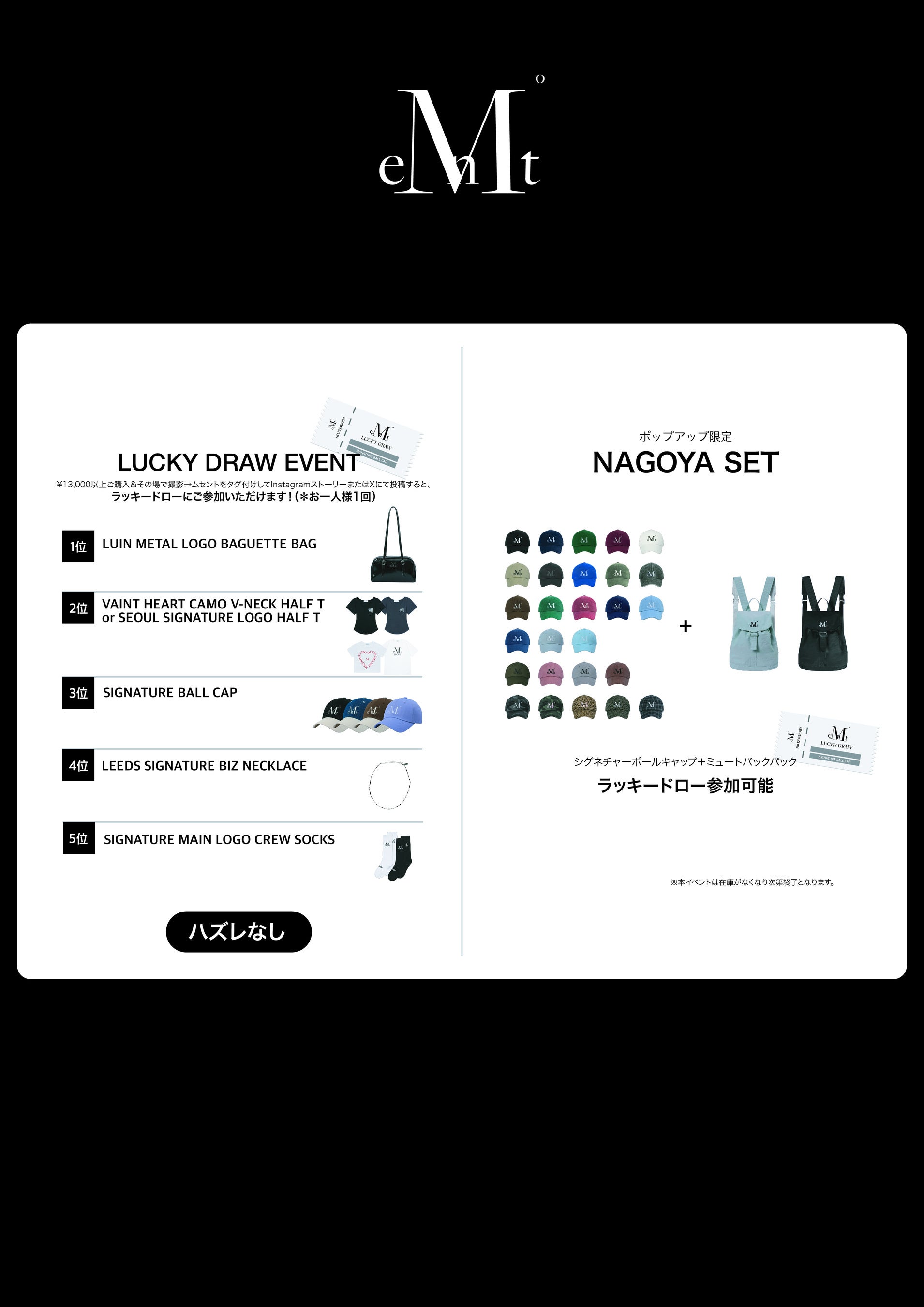 期間中は月ごとに異なる企画をご用意しているため、何度でもお楽しみいただける内容となっております。本POP-UPはMUCENTをもって名古屋PARCOでの展開が最終となりますので、ぜひこの機会にご来店ください。