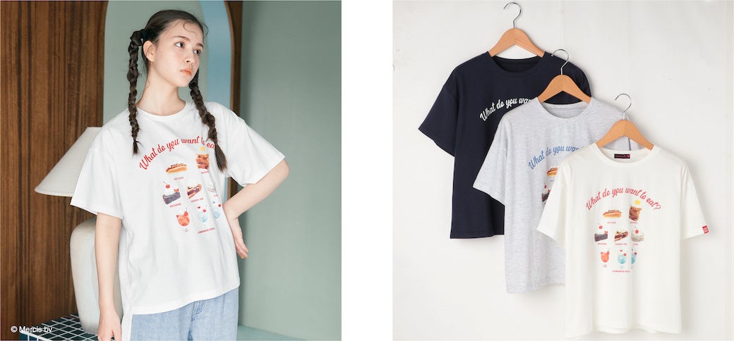 <カフェメニュー風のデザインがかわいい♡プリントTシャツは3色展開>