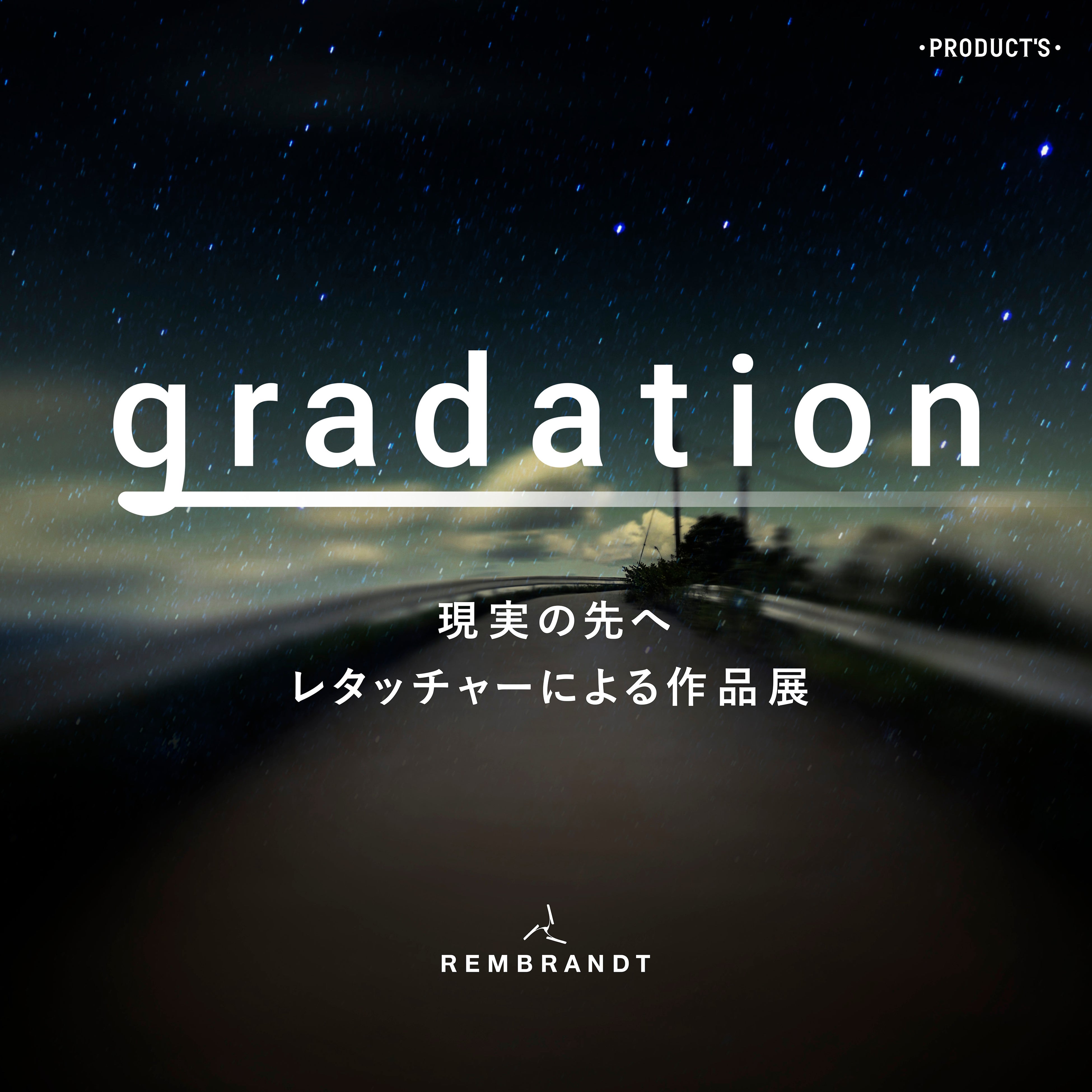 「gradation」とは、ラテン語で「歩み」「過程」「段階」を意味する“gradus”に由来する言葉である。 日々絶え間なく歩み続けるレタッチャーの技術、 時代を経てより緻密になっていくレタッチの過程、そのどちらもが融合して一つの形になる段階がグラデーションそのものと言い表すことができるだろう。