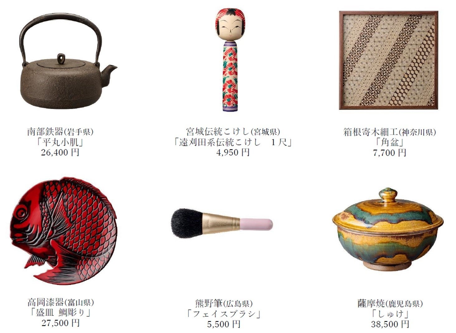 1.伝統的工芸品 経済産業大臣指定伝統的工芸品及びそれに準ずる工芸品(伝統的技術を活用して指定地域内で製作された二次製品等) であって、指定産地組合等が認めた日本国内で製作された製品とする。
