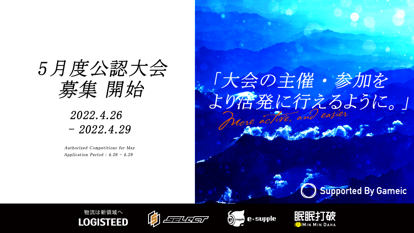 5月度公認大会への公募は、4月26日〜4月29日23時59分までの間、Gameic公認大会審査用LINE公式アカウントにて受け付けいたします。