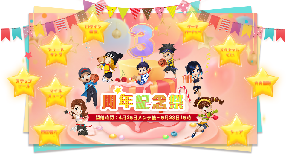 株式会社ファイブクロスから配信中のリアルなストリートバスケを体感できるスマホ向け対戦型ゲーム『スマッシュダンク』は、2023年4月25日(火)より、豪華な3周年記念キャンペーンを開催いたします。