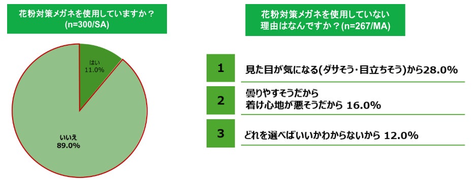 花粉対策メガネの未使用率は約9割。理由は「見た目」や「使いにくそう」が上位に。