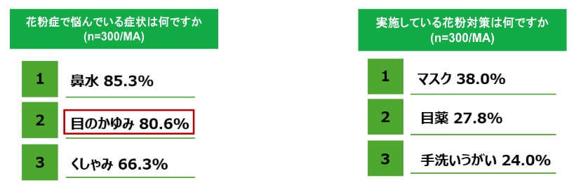 花粉症の悩みとして8割以上が「目のかゆみ」を訴える結果に。