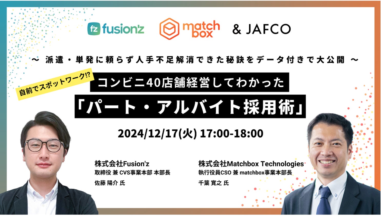 ~40店舗以上のコンビニ経営を成功させてきたメガフランチャイジー、株式会社Fusion'zが、派遣・単発バイトに頼らず人手不足解消できた採用術をデータをもとに徹底解説~