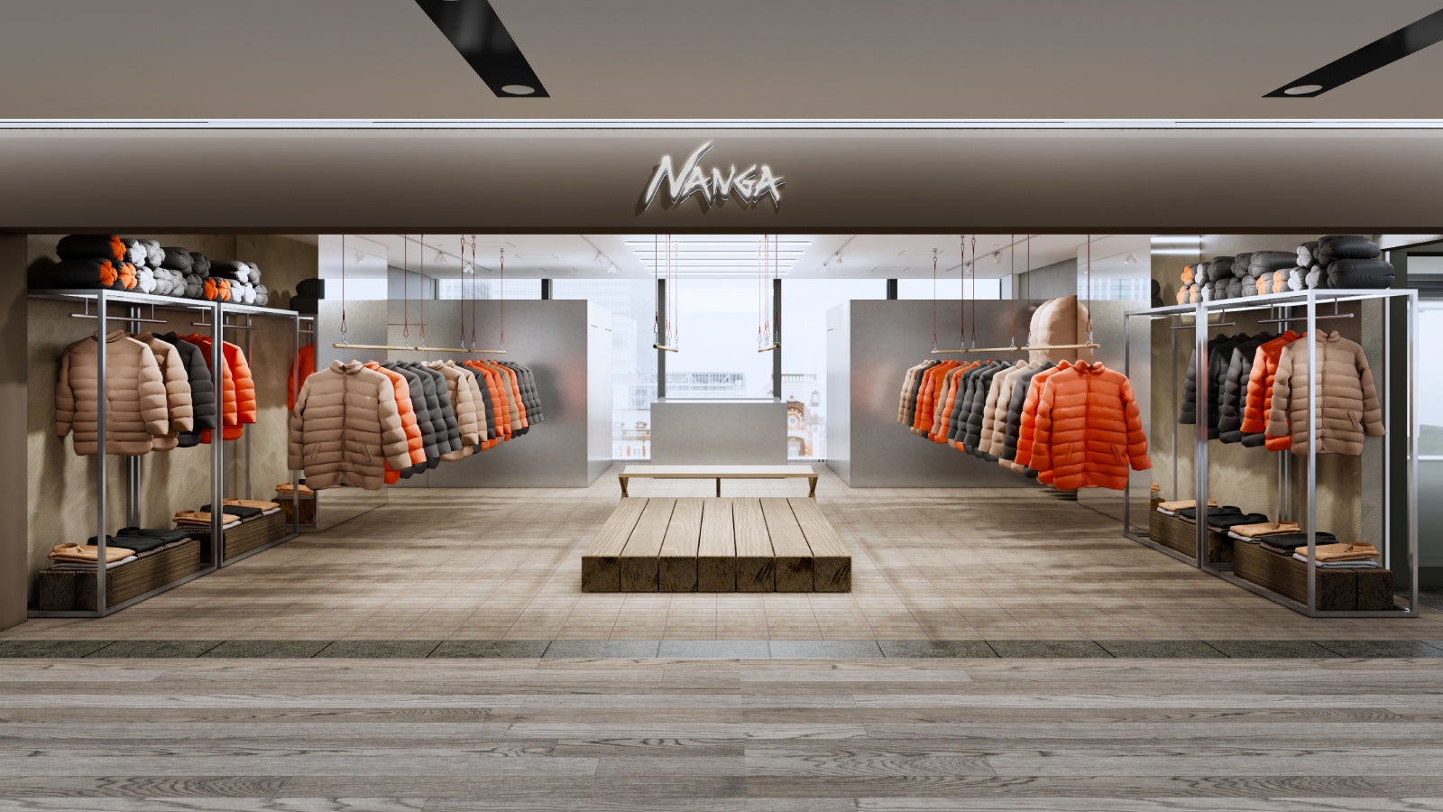 新たにオープンするNANGA SHOP MARUNOUCHI SHIN MARUNOUCHI BUILDINGでは、フィールドでも街でも活躍するダウンウェアやアパレルの魅力を最大限に引き出すため、空間設計から照明計画に至るまで細部にこだわりました。アウトドアの枠を超え、日常に溶け込むアイテムが揃うこの場所は、訪れる人に新しい発見と心地よい体験を提供します。