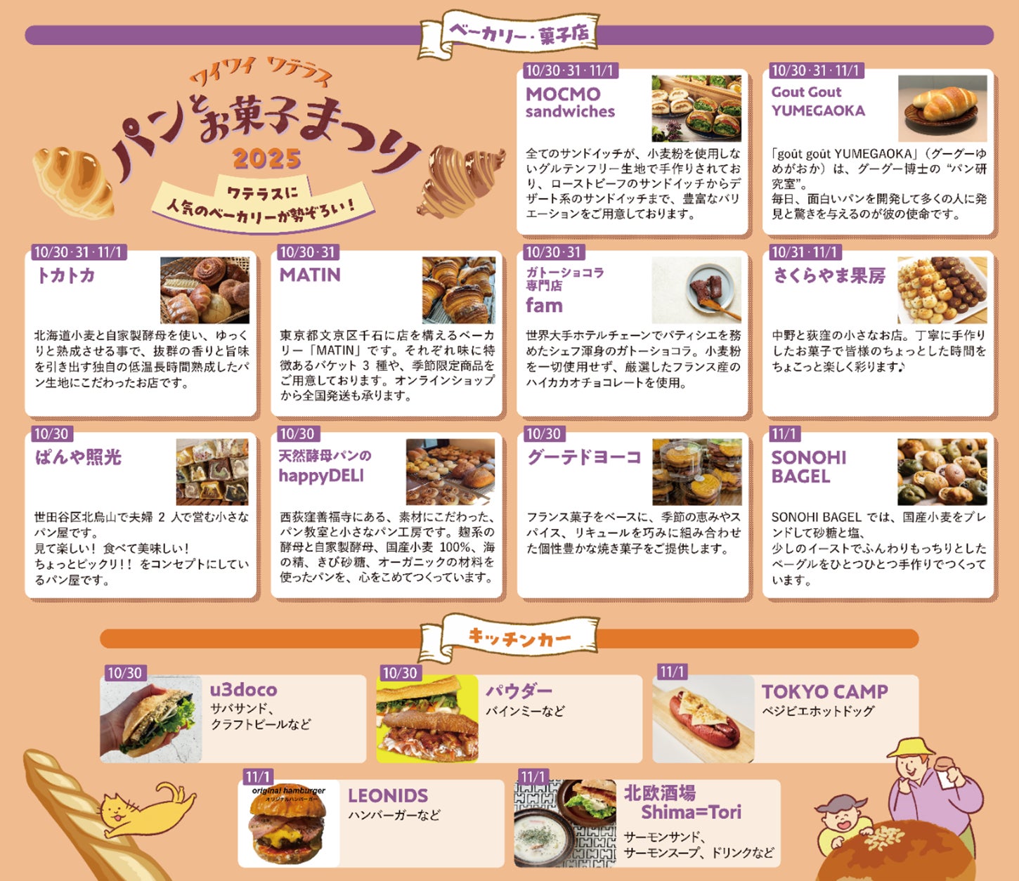 店舗:ベーカリー・菓子店15店舗、3日間のべ 24店舗が出店します。